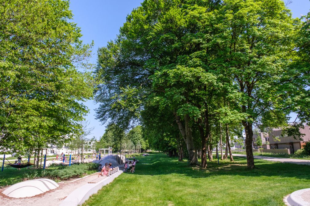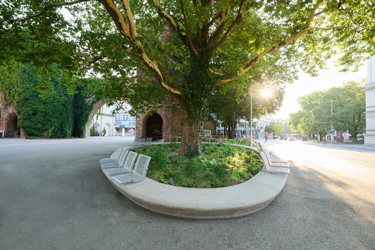 Neue Baumstandorte stellt das Baureferat standardmäßig mit einem extragroßen Wurzelraum her. Die Baumgruben befüllen die Fachexpert*innen des Gartenbaus mit speziellem, nach wissenschaftlichen Kriterien entwickelten Substrat. Baumgruben dieser Größe können bis zu 12.000 Liter an Niederschlagswasser speichern. So steht den Bäumen auch in längeren Trockenperioden Feuchtigkeit zur Verfügung. Junge Stadtbäume erhalten so die bestmöglichen Voraussetzungen, sich auch unter schwierigen klimatischen Bedingungen gut entwickeln zu können.