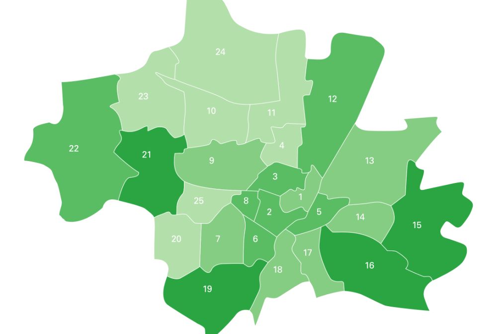 Mit den Pflanzungen hat das Baureferat 2024 begonnen. Ende 2024 konnte es bereits rund 600 Neupflanzungen in Grünanlagen und im Straßenbegleitgrün realisieren. Unter anderem sind so in der Grünanlage Walter-Hopf-Weg/Stiftsbogen 26 Bäume, in der Grünanlage Kurparkstraße 23 Bäume, im Straßenbegleitgrün an der Marsopstraße 15 Bäume und in der Grünanlage Am Durchblick sieben Bäume neu hinzugekommen. Die Maßnahme wird 2025 fortgeführt. Heuer werden in Grünanlagen und im Straßenbegleitgrün voraussichtlich etwa 800 Bäume hinzukommen. Auch im bisher befestigten und versiegelten Straßenraum werden 2025 die ersten Umbaumaßnahmen einschließlich neuer Straßenbäume abgeschlossen. Das Baureferat (Tiefbau) sorgt in diesem Zuge voraussichtlich für rund 100 zusätzliche Baumstandorte, zum Beispiel in der Adelgundenstraße für drei Bäume, in der Ohlmüllerstraße für vier Bäume, in der Hans-Mielich-Straße und am Hans-Mielich-Platz für acht Bäume, in der Unteren Weidenstraße für zwölf Bäume, in der Rohrauerstraße für 19 Bäume und in der Paosostraße für 15 Bäume.