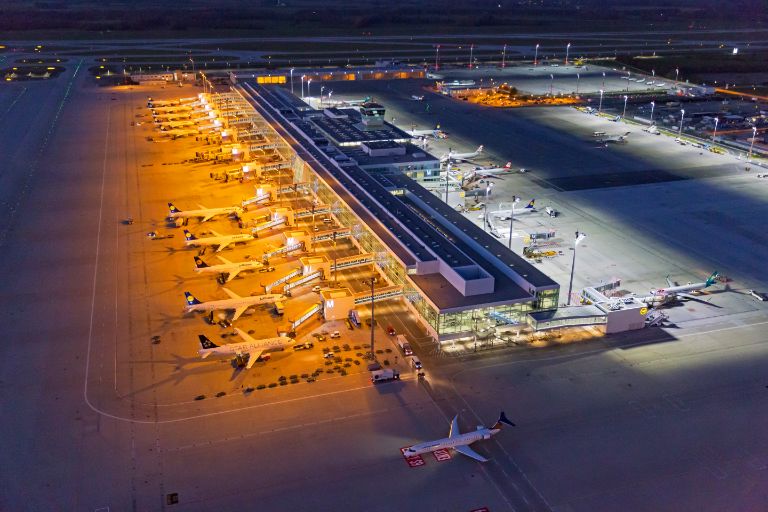 Eigens für den Airport wurde eine der innovativsten LED Hochmast-Anlagen entwickelt. Die Implementierungsphase von sechs Jahren war zwar lang und die Investition mehrerer Millionen Euro kostspielig, aber das Ergebnis ist es allemal wert: jährlich spart der Flughafen München damit rund 2800 Tonnen CO2.