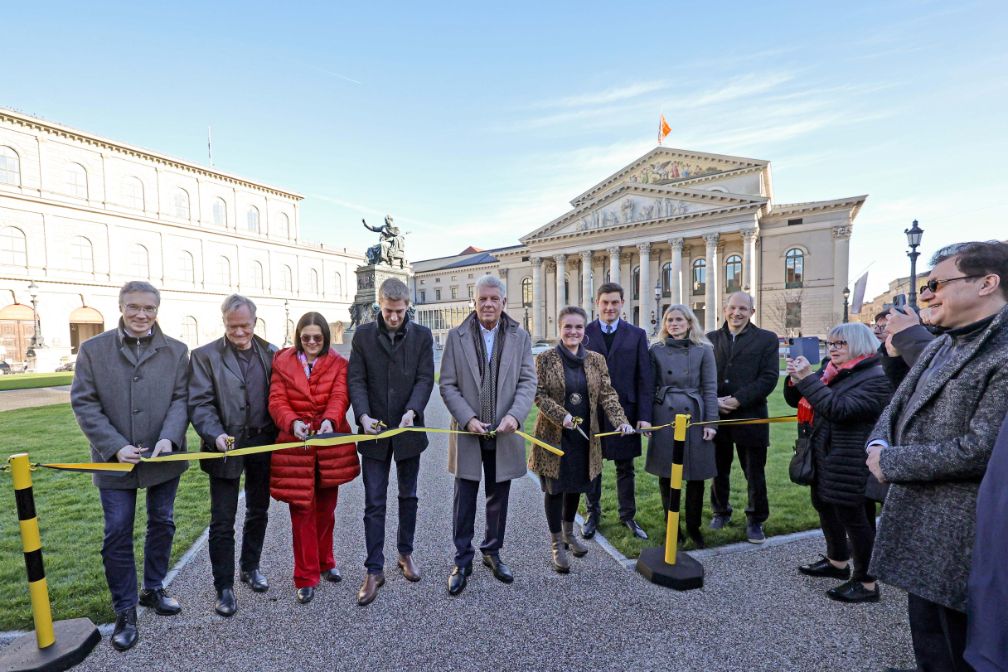 Das Baureferat hat die Interimsgestaltung des Max-Joseph-Platzes fertiggestellt. Die Bauzäune, die in den letzten Wochen den neu verlegten Rollrasen geschützt haben, konnten nun abgebaut werden. Oberbürgermeister Dieter Reiter, Baureferentin Dr.-Ing. Jeanne-Marie Ehbauer, Stadtbaurätin Prof. Dr. (Univ. Florenz) Elisabeth Merk, Mobilitätsreferent Georg Dunkel und der Generalkonservator des Bayerischen Landesamts für Denkmalpflege Prof. Mathias Pfeil haben den Platz heute für die allgemeine Nutzung freigeben. Zuletzt wurden neue Großpflanzgefäße – teils mit Sitzgelegenheiten – auf den neuen Aufenthaltsflächen außerhalb des Rondells platziert.
