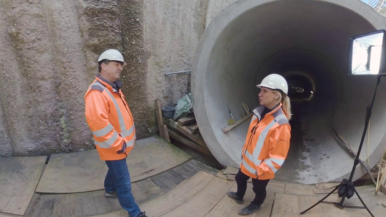 Doch wie sieht es da unten aus? Was passiert da genau? Wir zeigen Ihnen was sich unterirdisch alles tut. Über eine Länge von 980 Metern führen wir Sie durch einen Abschnitt der neuen Kanaltrasse mit einem Durchmesser von 3 Metern und geben Ihnen einen Einblick in das Baugeschehen der vergangenen Monate.