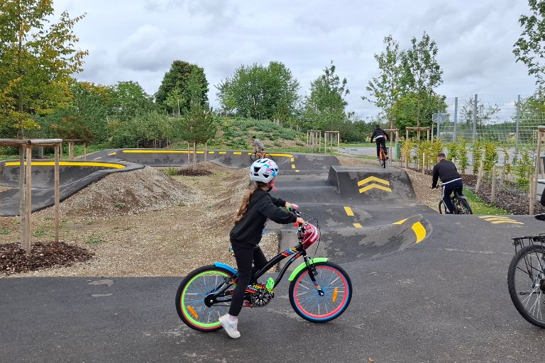Ebenfalls ein neues und bereits intensiv in Anspruch genommenes Angebot für Rollsportbegeisterte ist der nun asphaltierte und damit ganzjährig nutzbare Pumptrack. Bereits seit Mitte Juli können seine Wellen, Jumps und Steilkurven befahren werden – mit dem Fahrrad, insbesondere Dirtbikes, aber auch mit Scootern oder Inlinern.