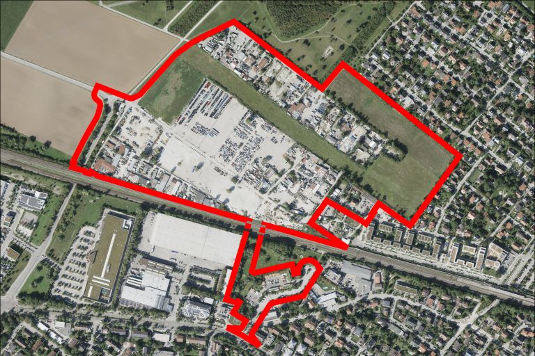 Seit den 1960er-Jahren siedelten sich auf der Fläche zahlreiche Gewerbebetriebe an. Künftig soll hier ein urbanes, gemischt genutztes Quartier mit einem großen Anteil an Wohnungen entstehen. Die Entwicklung des Areals erforderte in einem ersten Schritt zahlreiche Voruntersuchungen und Gutachten, unter anderem zu Bodenverfüllungen, Erschließung, Klima und Regenwassermanagement. Deren Ergebnisse sind im Eckdatenbeschluss gezeigt, ebenso wie eine Konzeptstudie mit dem städtebaulichen Vorentwurf für das neue Quartier. Dieser untersuchte geeignete Standorte für die Bebauung. So sollen sich die Gewerbebauten entlang der Bahnlinie aufreihen. Nördlich schließt sich die neue Wohnbebauung an. Zudem sind identitätsstiftende Hochpunkte geplant, die die Entwicklung des Gebiets zum innovativen, belebten Stadtbaustein zeigen.