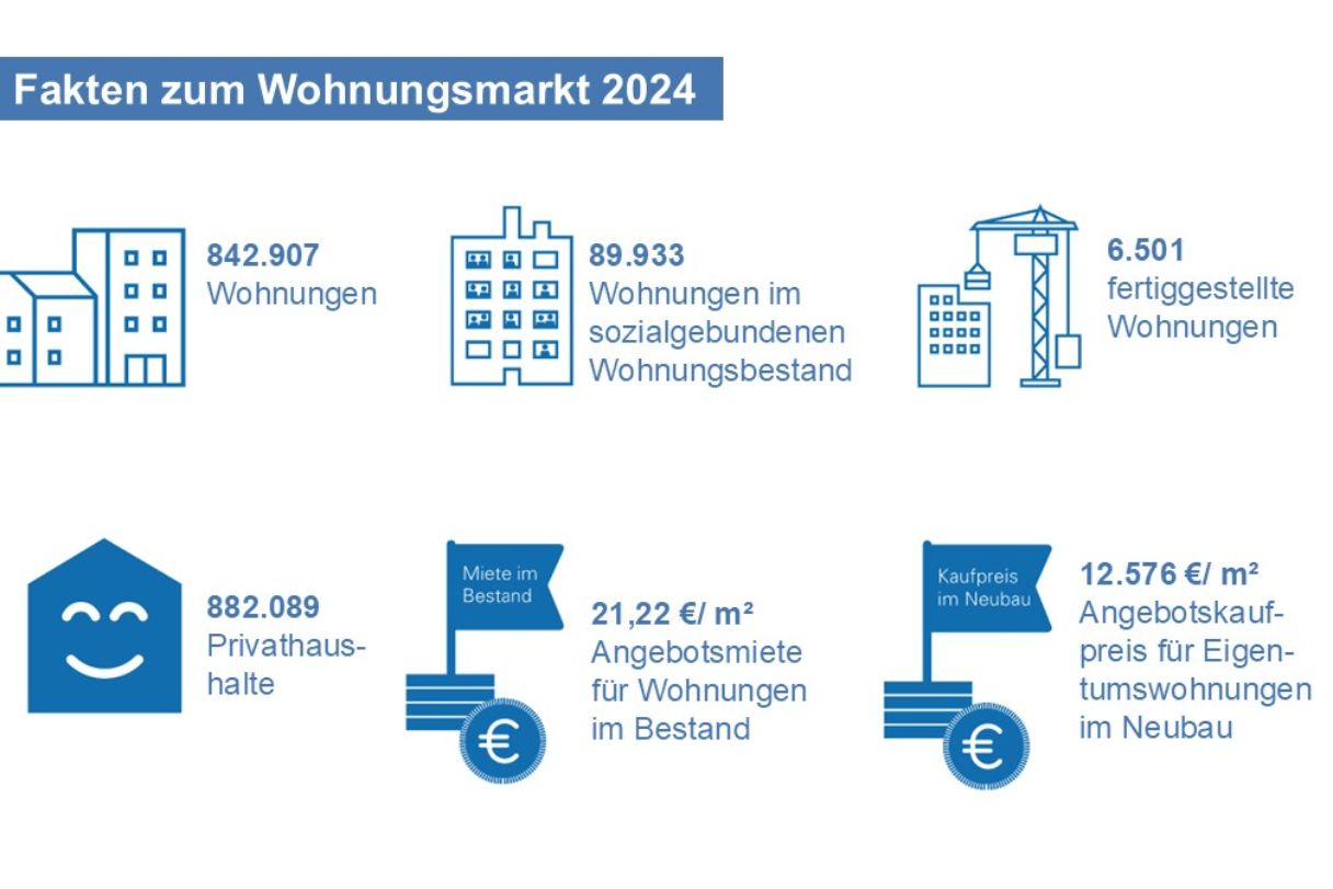 Das Faltblatt „Wohnungsmarktdaten München“ ist ein kompaktes Update zur Wohnungssituation in München. Darin finden sich unter anderem aktuelle Zahlen zum Wohnungsbestand, zum geförderten Wohnungsbau, zur Baurechtsschaffung, zu den Baugenehmigungen und Fertigstellungen sowie die Immobilien- und Mietpreise und eine kurze Einschätzung zur Entwicklung des Wohnungsmarktes.