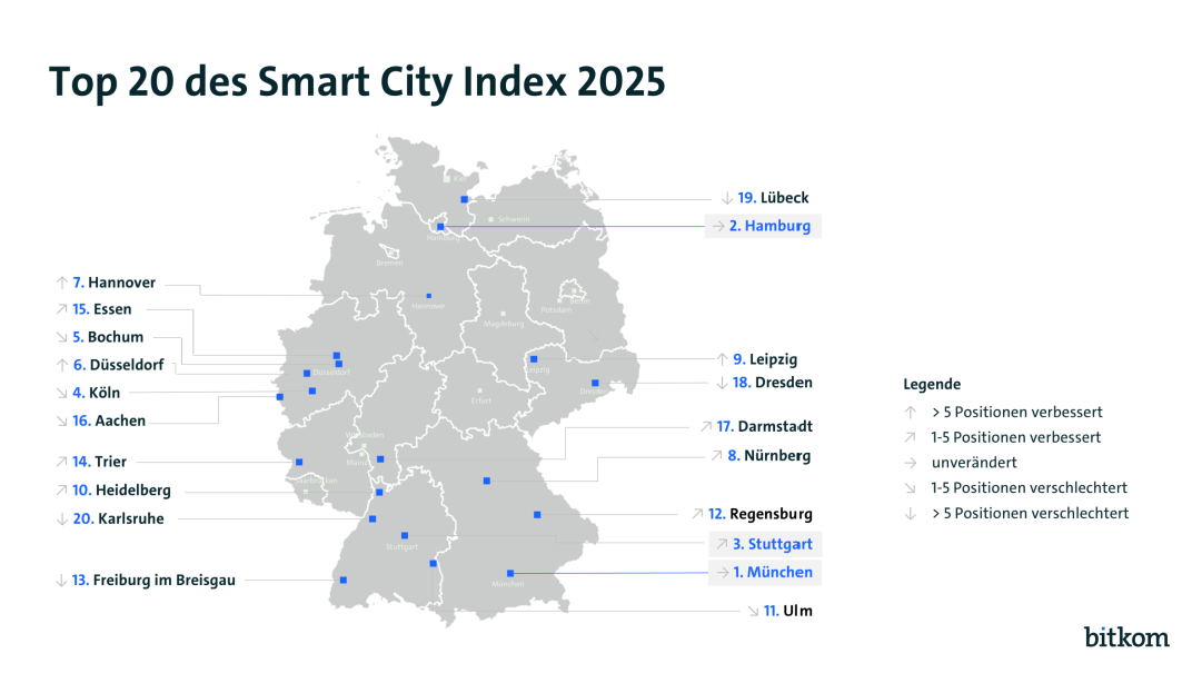 Munich once again defends its top position in the Smart City Ranking of the digital association Bitkom.