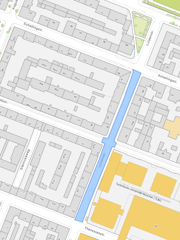 Das Baureferat erneuert die Luisenstraße zwischen der Schelling- und der Theresienstraße. Wesentliches Ziel ist es, die Verkehrssicherheit zu erhöhen.