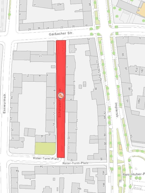 Im markierten Bereich der Schanzenbachstraße (siehe Karte) pflanzt das Baureferat im Randbereich der Fahrbahn acht neue Bäume. Dafür werden Baumgruben ausgehoben und mit Substrat, das viel Wasser speichern kann, gefüllt. Im Zuge der Maßnahme passt das Baureferat die Entwässerung an. Die Bäume werden voraussichtlich im Frühjahr eingesetzt.
