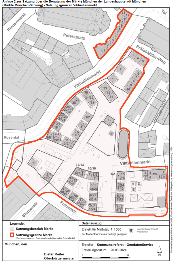 a) Plan für den Viktualienmarkt, Stand 26.03.2024, Maßstab