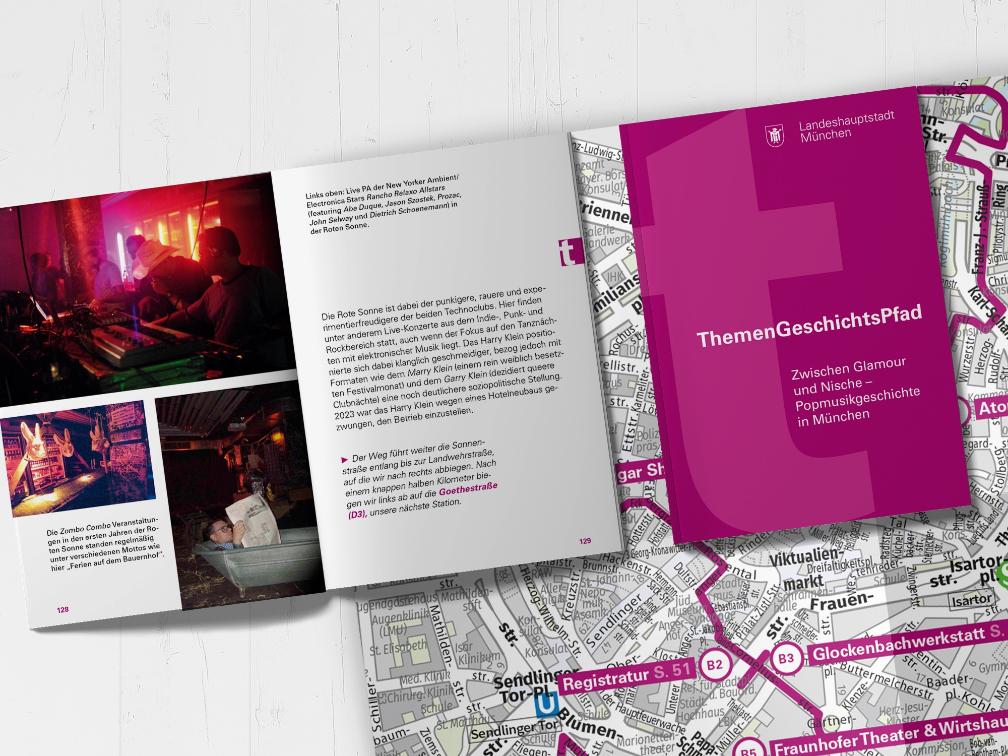Die Broschüre lädt zu einem Rundgang durch die Münchner Popmusikgeschichte ein und führt zu 43 ausgewählten Orten in der Stadt. Vier Routen erschließen das Gebiet: Zwei Strecken im Zentrum sind zu Fuß begehbar, zwei weitere für das Fahrrad konzipiert. Einstiegspunkte und Hinweise zu Haltestellen sind jeweils zu Beginn der Routen angegeben.